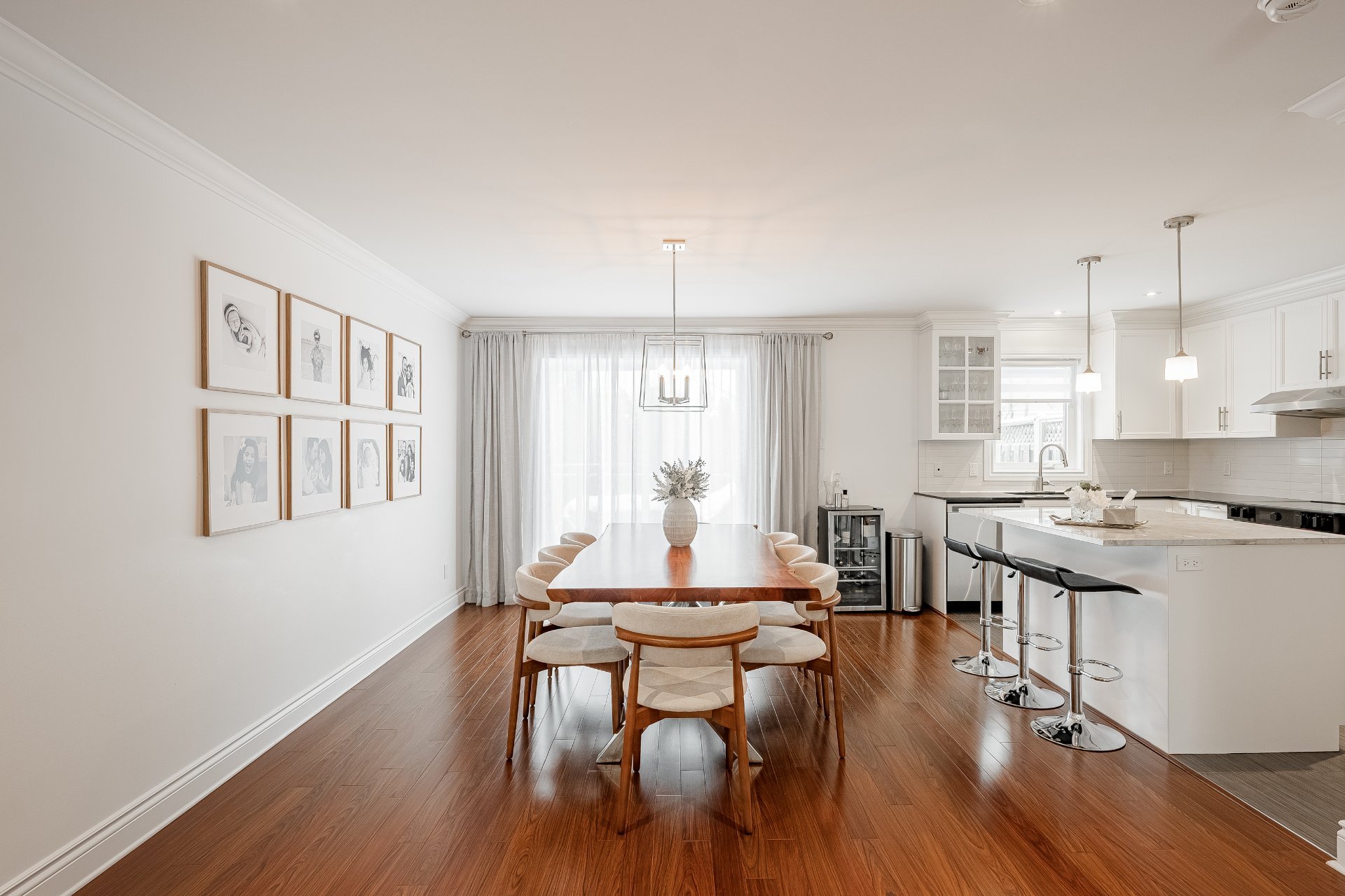 and functionality. The adjacent dining room, bathed in