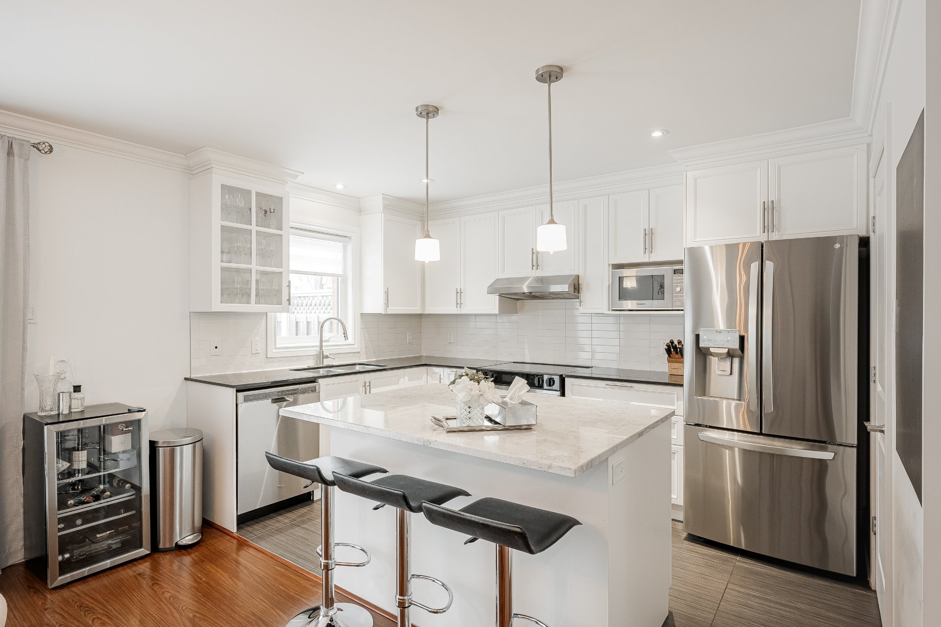 Combining elegance and comfort, this beautiful townhouse offers an ideal living environment for families. The bright living room, open-concept kitchen with granite countertops, central island and pantry, and dining area opening onto a private rear terrace create a warm, inviting space. Featuring 3 bedrooms with walk-in closets, 3 bathrooms, 1 powder room, a finished basement and double garage, it delivers effortless everyday living. Enjoy exceptional walkability to Fairview Pointe-Claire, REM, restaurants, De Salaberry Bike Path, Elm Park Pool, parks, schools, and services.