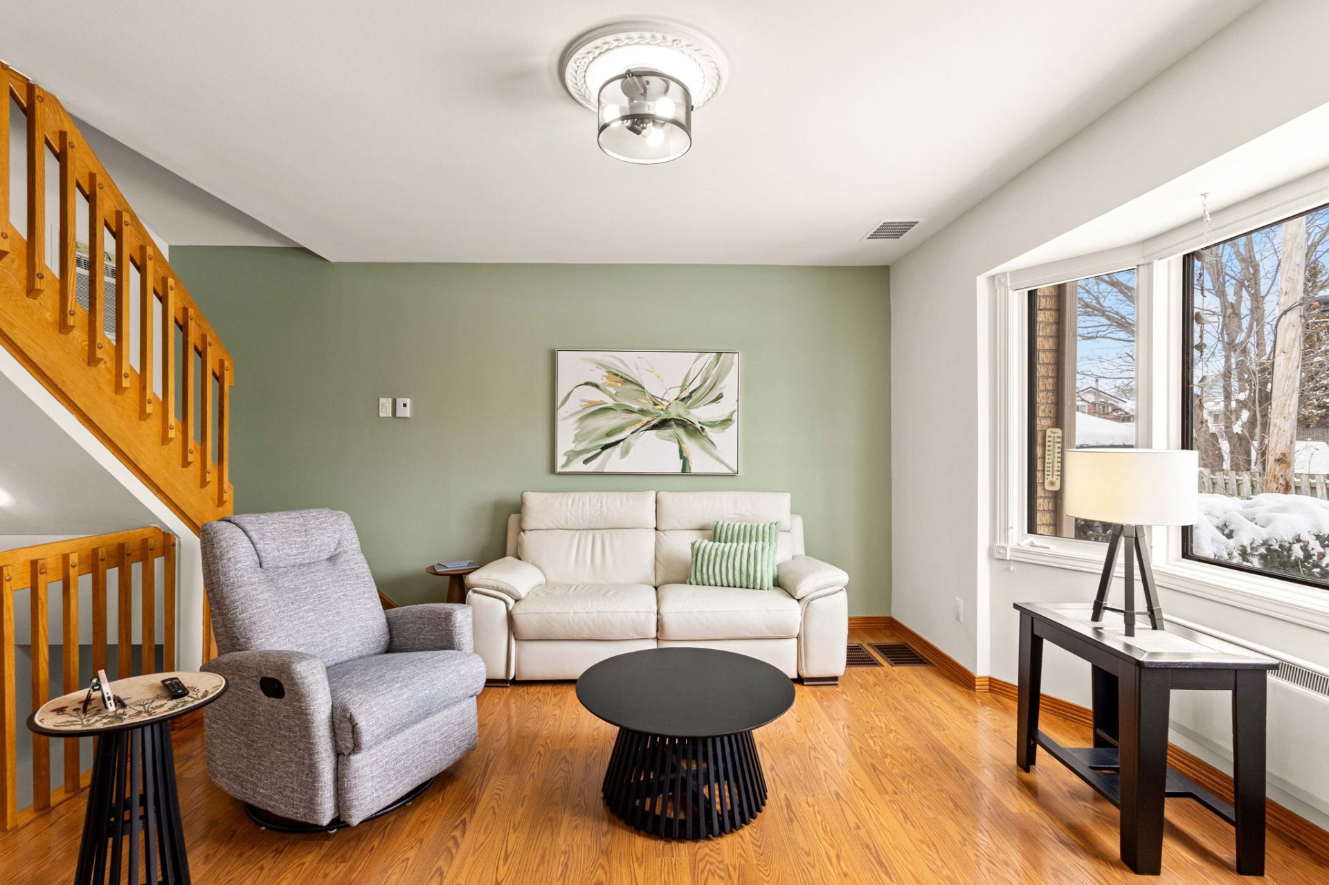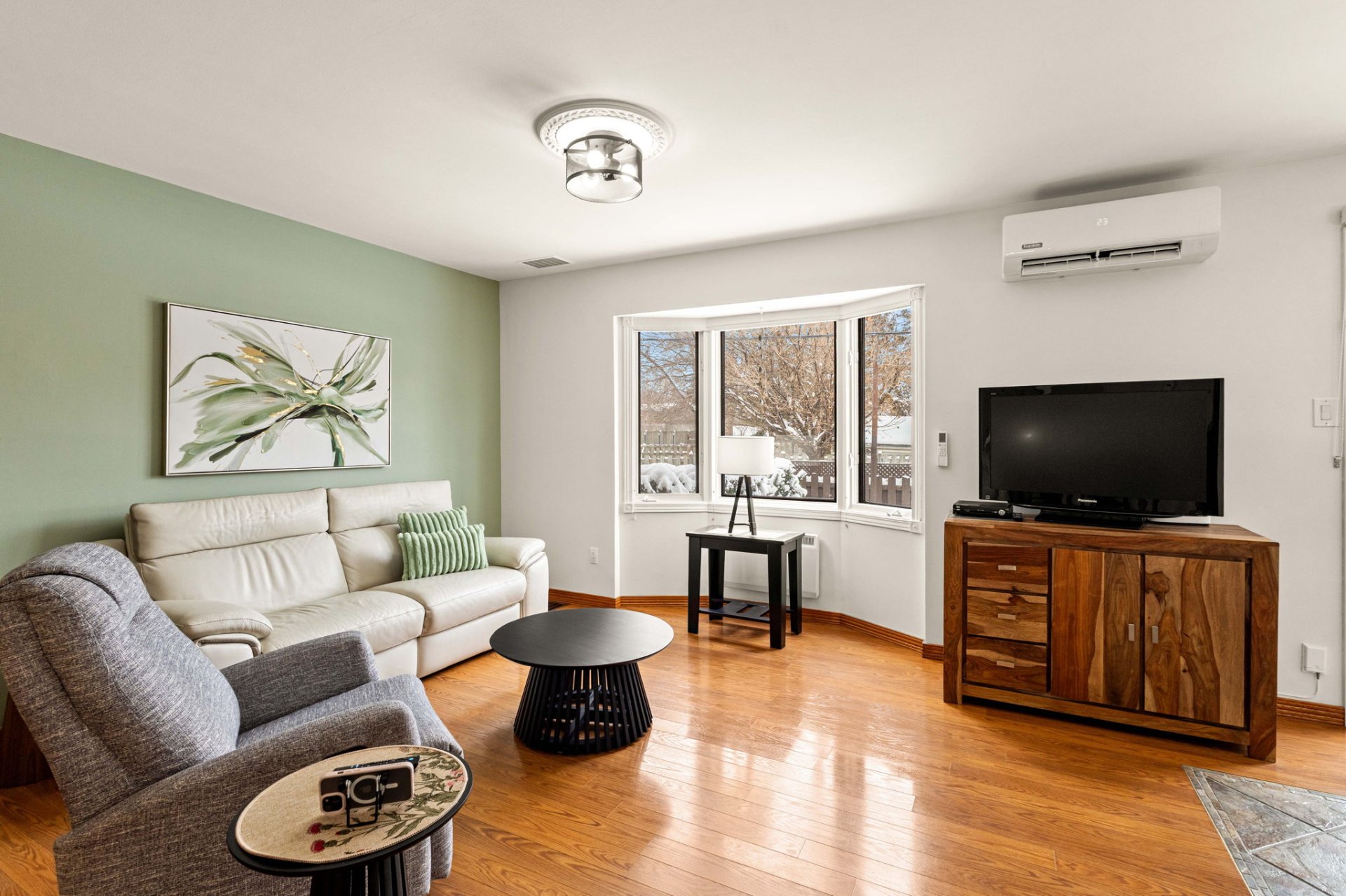 room, creating a warm and inviting living space. Three