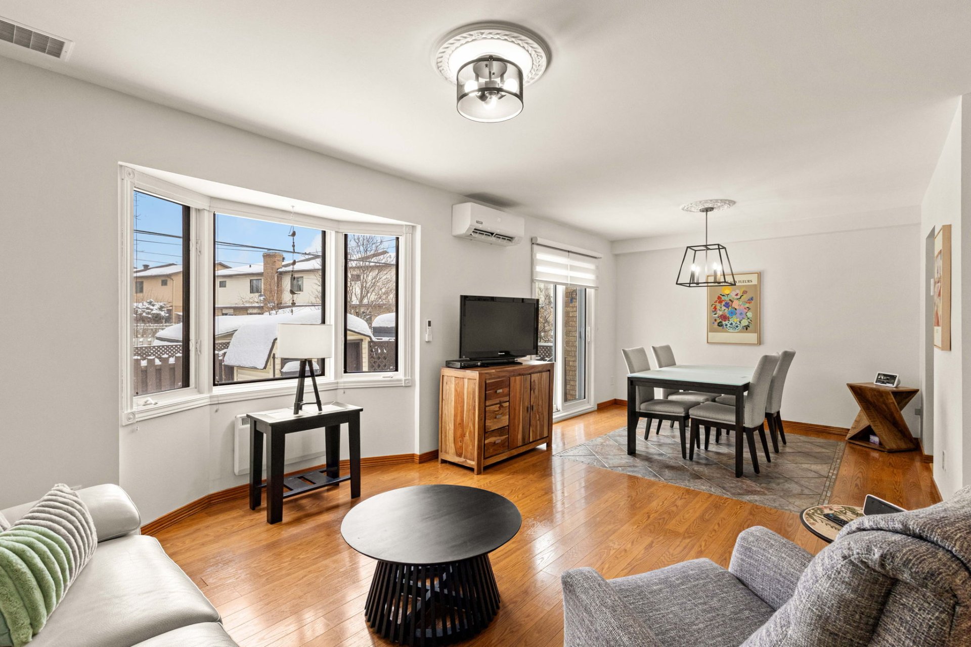 dining room opens harmoniously onto a large, bright living