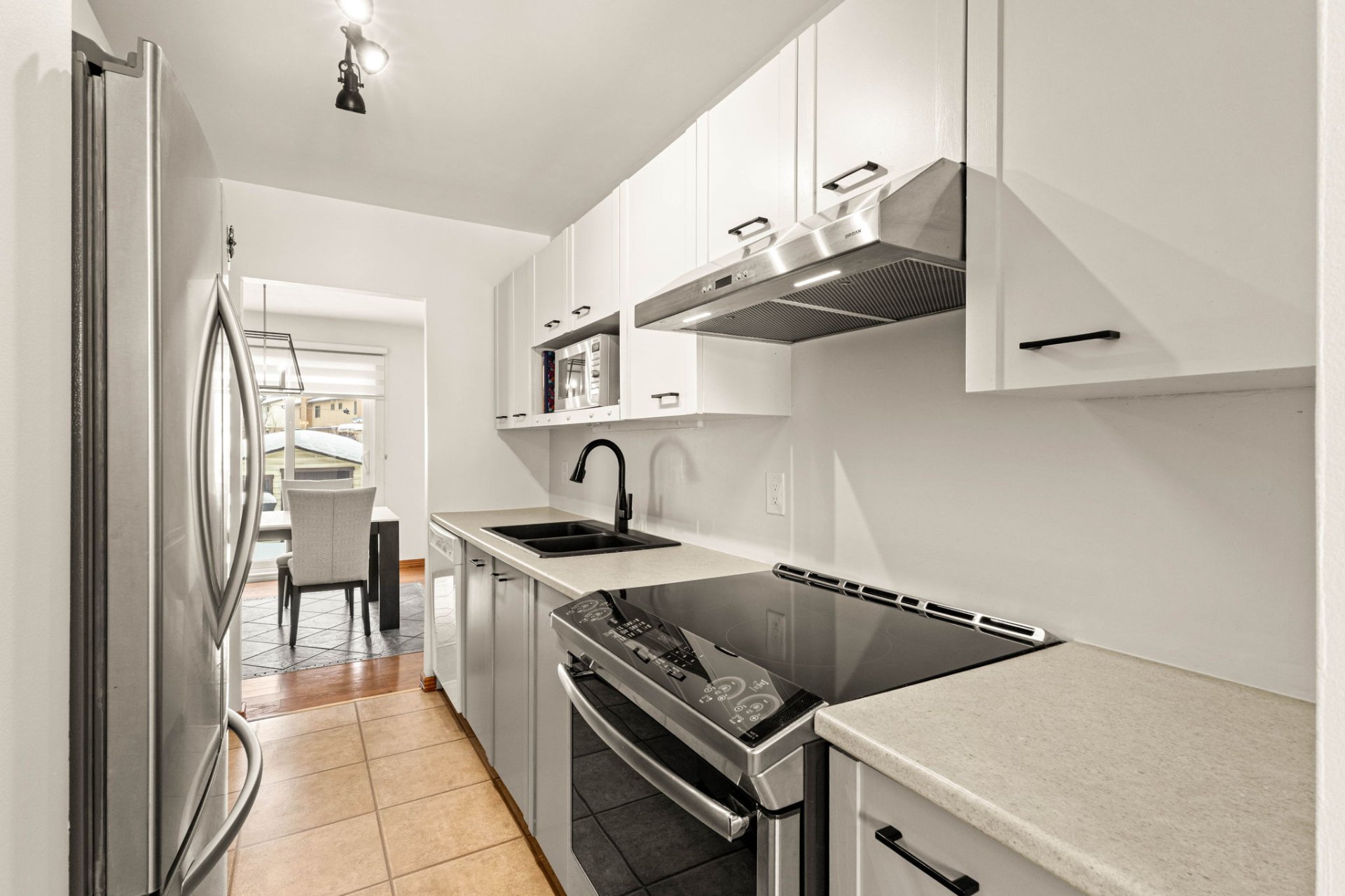 First time on the market! A rare opportunity to acquire a property that has been carefully maintained by its original owner. Located on a peaceful cul-de-sac, this charming townhouse offers an ideal living environment for families. Functional kitchen with bright windowed dining area, dining room opening onto a large, welcoming living room. Three good-sized bedrooms, one bathroom, and one powder room. Finished basement with family room and wood stove. Fenced 2,165 sq. ft. lot with hedges, shed, and garage. Strategic location near the train, REM, and 5 minutes from Montreal-Trudeau International Airport.