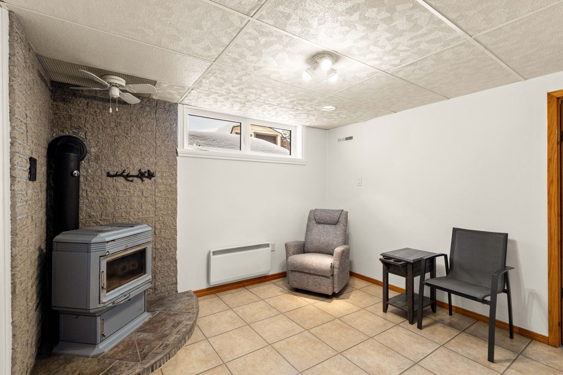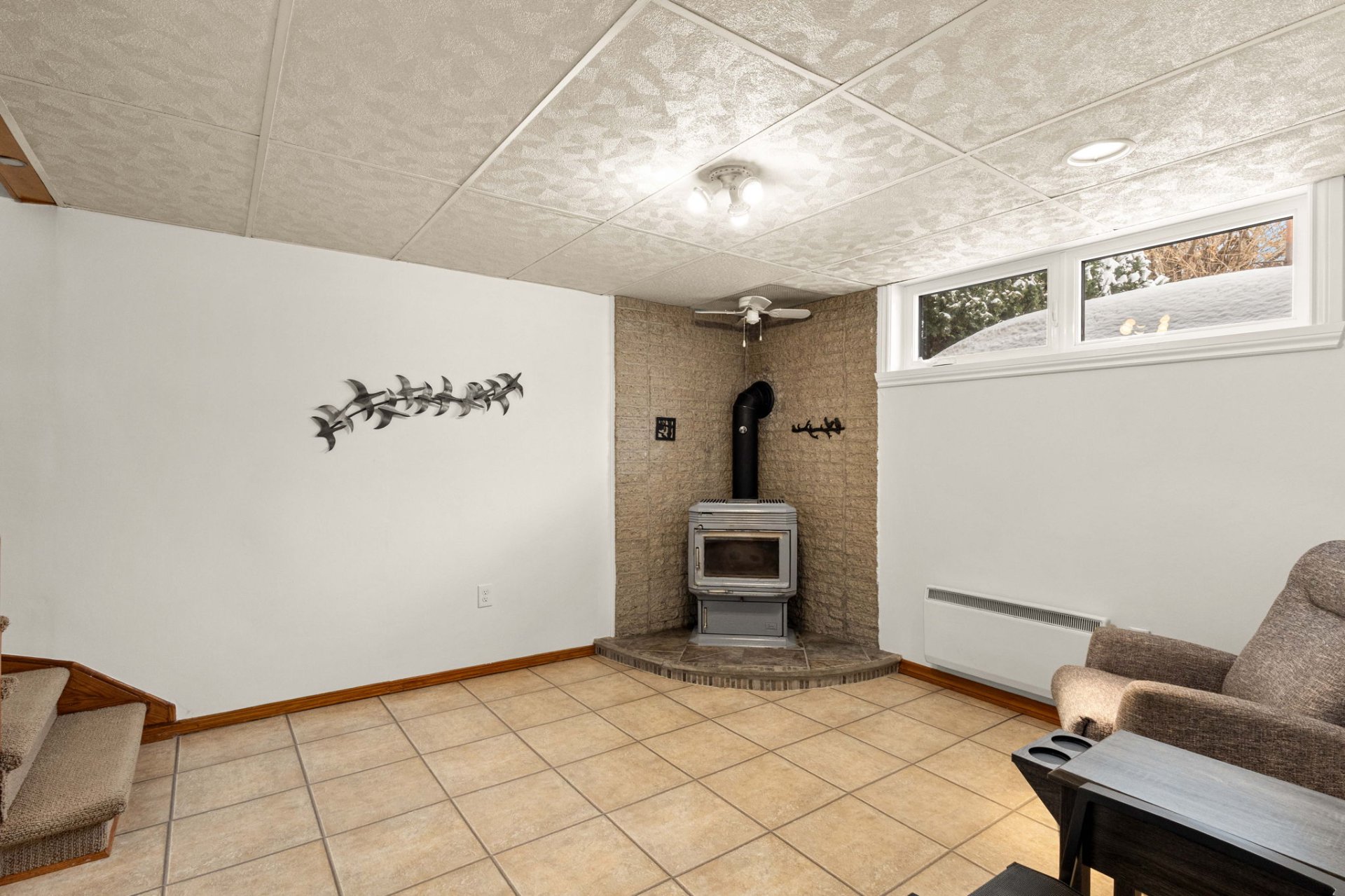 wood stove, providing a warm and comforting atmosphere, as
